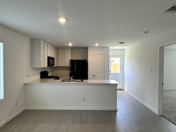 Step inside to discover an open and inviting floor plan with durable wood-look vinyl flooring throughout the main living areas and soft carpeting in the bedrooms for added comfort. The modern kitchen is equipped with sleek black appliances, ample cabinetry, and plenty of counter spaceideal for preparing meals or entertaining guests.