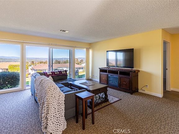 Welcome to the amazing lifestyle of this completely detached single-level home at the top of the world with PANORAMIC VIEWS in the active adult community of Oceana. Leave the cares of the world behind as you enter the serenity of the gated breezeway courtyard separating the home from the 2-car garage and laundry area (washer and dryer included!). The midcentury carved-detail front door beckons you inside. The updated kitchen with an abundance of soft-close cabinetry, upgraded appliances, newer fixtures, recessed lighting, luxury plank vinyl floor and breakfast bar is open to the dining room and looks out to the courtyard through top quality double-paned windows. From the dining room, access the courtyard or expansive living room and that VIEW - grab a cup of tea and a good book and enjoy your back porch looking across the valley over rooftops to distant mountains, some now snowcapped. The master bedroom is so spacious and features 2 windows to the view, closet space galore and ensuite access to the master bath, with roll-in threshold shower and dual vanity. The second bedroom itself is large and can be a second master as it is adjacent to the full bath in the hall with its updated vanity and tub. Central-air cooled and freshly painted, this home is ready to move in and start living the life! And speaking of the LIFE.. Oeana is a luxury lifestyle with pool and spa, clubhouse with billiards, card room and every activity and class you can imagine. Just steps from your front door is a beautiful park with benches and a view that sweeps all the way from the mountains to the ocean. Oceana is a great place to stay busy or relax with new friends, balanced by the privacy and autonomy of a detached single-family home you can either entertain in or escape to!