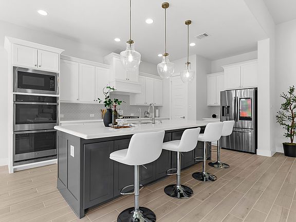 Impressive single-story floor planPrivate officeThree-car tandem garageCovered patioDedicated media roomStatement islandDouble ovens