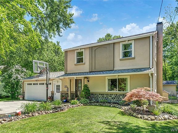 Welcome to 3903 E Robinson Rd! This updated 3 bed, 1.5 bath home on a 0.53 acre lot is just off Nia Falls Blvd in the desirable Town of Amherst, close to all conveniences. Enter a bright living room w HW floors, crown moulding, recessed lighting, & beaming picture window. Living room opens to a fully applianced, eat-in kitchen w updated cabinetry, quartz countertops w undermount SS sink, marble backsplash & formal dining room w decorative wainscoting. The 1st floor has an add'l unlisted 300SF off dining room there is a living space w large windows, skylight, & glass door w internal blinds all overlooking the park-like yard and renovated 1/2 bath and mudroom, exiting the attached garage. 2nd floor has 3 bdrms & 1 full bath w double vanity, brushed nickel fixtures, and tiled shower. Finished basement w egress, central vac, glass block, HWT ('21), and upgraded 200 amp electrical service ('19). Outside is a large two-tiered deck, massive tool shed w 100 amp service/sub panel, partially fenced yard, and cute swingset/playhouse. Also for sale is adjacent 1/2 acre vacant lot (MLS#B1549633). Open houses Sat 7/13 & Sun 7/14 1-3pm Offers, if any, will be reviewed Tue, 7/16 at 12pm.