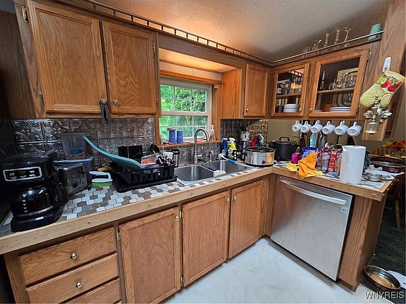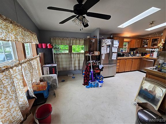 Welcome to this 3-bedroom, 2-bathroom ranch-style home nestled on almost 6 acres of a perfect blend of cleared and wooded land. Enjoy the peace and privacy of the countryside with room to roam, garden, or just take in the natural surroundings. Inside, the spacious eat-in kitchen offers plenty of room for meals and entertaining. The oversized living room features cathedral ceilings, creating an open, airy space ideal for family gatherings and relaxing evenings. Step outside to enjoy your morning coffee or unwind at the end of the day on the back deck, where you can watch local wildlife in their natural habitat. A 1.5-car detached garage provides extra storage or workshop space. This property is perfect for those looking for quiet country living with the convenience of a well-maintained home.