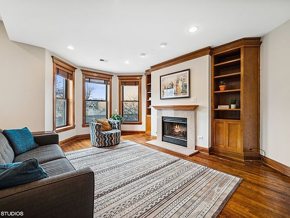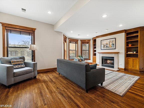 Come and see this beautiful vintage building in a perfectly situated location! Step inside a 2 bedroom, 2 bathroom unit complete with hardwood floors, separate dining room off the kitchen, updated kitchen with 42inch cabinets, granite and stainless appliances. Expansive living room with a fireplace and lots of windows. Two generous bedrooms. Laundry in unit. Central AC and heat. Leased parking available in the rear of the building. Shared deck space perfect for entertaining during the summer. A quick and easy walk to the El, Wrigley Field, the lake, and much more!