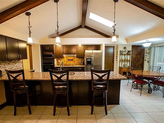Are you in search of large, spacious living? As you enter, you will see distinctive upgrades from the foyer tile-inset design to custom built planters in rustic decorative stone. The foyer leads you into the family room, it's focal point being the fireplace with floor-to-ceiling stone, glorious beamed cathedral ceilings and access to the outdoor living. From both the foyer and family room you enter a dining room ideal for large gatherings and Holiday meals. The kitchen has been upgraded to include granite counter tops, designer back splash, stainless steel appliances, including a built-in wall oven and French door refrigerator. The over-sized breakfast bar offers ample space for prep and dining alike. The beamed ceilings continue into the space and a sky-light adds to the natural light. Currently, the footprint of this home is 2 Master Suites and a bedroom plus office/den originally 4-bedrooms. To convert back is a viable possibility. In fact, with the current setup, the one master offers a private sitting room area. The 2nd master has wood flooring, master bathroom with embellishments such as the above-counter dual bowl sinks, low-flush lavatories, a garden tub designed for relaxation and rejuvenation, and even a bidet! The rustic decorative stone is a major design feature carried throughout the home. Sitting on 1/3rd of an acre, this home is located on a cul-de-sac. Great school district! This home is a rare find. Call today to schedule your viewing and be prepared to make an offer!
