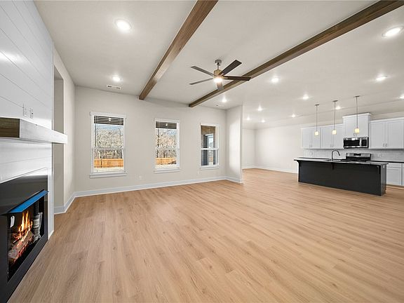$3,000 if you use the preferred Lenders & fence, blinds and gutters included! MODEL HOMES located at 3801 & 3803 SW Pecan Cir. Snyder Meadows, a neighborhood nestled in West Bentonville. Grayson plan with the luxury package includes full tile shower, frameless shower door, Frigidaire Gallery line appliances, accent paint color in the dining, 3CM quartz, wainscoting in entry, LVP flooring in master & accent paint color on kitchen island. Stunning painted brick on the exterior! Home boasting an open floorplan, high ceilings, custom stained beams, cozy gas fireplace enveloped in shiplap & stained beam mantle. Chef's kitchen adorned with stainless steel appliances, gas range, pantry, quartz countertops, spacious kitchen island & captivating backsplash. Unwind in the luxurious master bedroom featuring LVP flooring and abundant natural light, while the spa-like master bathroom offers a walk-in tile shower with frameless glass door, double sinks, and walk-in closet. Set on a large lot with a covered patio.