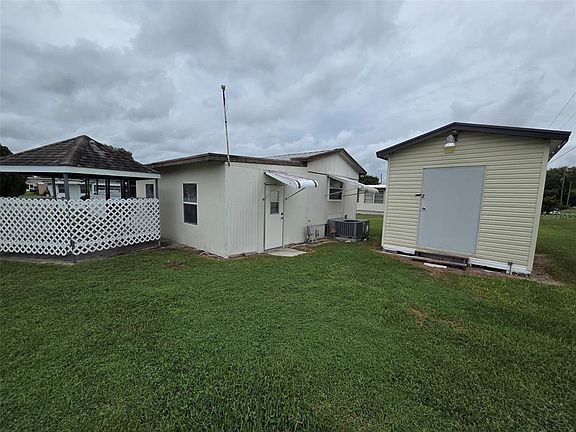 OWN THE LAND! NO LOT RENT! NO HOA with this cool little manufactured home. The lot is 64' x 85', bigger than most, and has a gazebo and utility shed. The home has two bedrooms, one bath and an airconditioned Florida room that includes the washer and dryer hook-up. The eat-in kitchen is very large and sports a breakfast bar. There are exterior awnings, a metal roof a screened porch and a car-port. No pet or age restrictions.