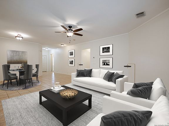 Welcome to this beautifully designed home offering a perfect blend of comfort and style! Step inside to discover an inviting open floor plan with soaring ceilings and abundant natural light. The large living room is perfect for gatherings, seamlessly connecting to the spacious kitchen, which features a breakfast bar, ample cabinetry, and generous counter space-ideal for any home chef. Enjoy your morning coffee in the cozy breakfast area overlooking the backyard. The primary suite is a true retreat, boasting a sitting area, a luxurious en-suite bathroom with dual vanities, a separate shower, and a relaxing garden tub. Two additional spacious bedrooms provide plenty of room for family or guests. Step outside to your well-manicured lawn and unwind under the large covered patio, perfect for enjoying those stunning Texas nights. Conveniently located near military bases, shopping, dining, and top-rated schools, this home is a must-see! Schedule your showing today!