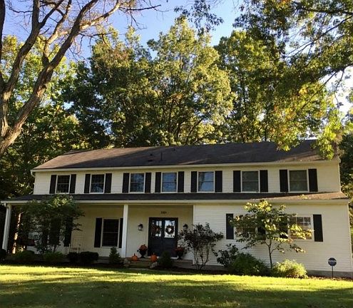Welcome to this newly updated colonial situated on over 1.5 acres in the quiet, family friendly neighborhood of Meadow Park. This 3100 sq ft home has been given a fresh look, featuring new flooring and fresh paint throughout. The large kitchen boasts ample space for cooking and entertaining with new granite countertops and an island with seating for four. The kitchen opens up into the warm family room with a brick wall fireplace and French doors leading to the bright sunroom. The master suite has a fully renovated master bath featuring double vanities, soaker tub and a floor to ceiling marble tiled shower. The second floor features two additional spacious bedrooms, a large hall bath with double vanities and a fourth en suite bedroom. A hallway closet also opens up to a tiled space with hook ups for a washer and dryer. The finished basement features a wet bar, full bath and plenty of room for additional storage.