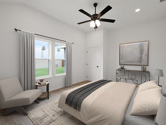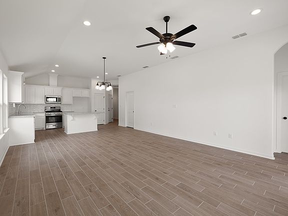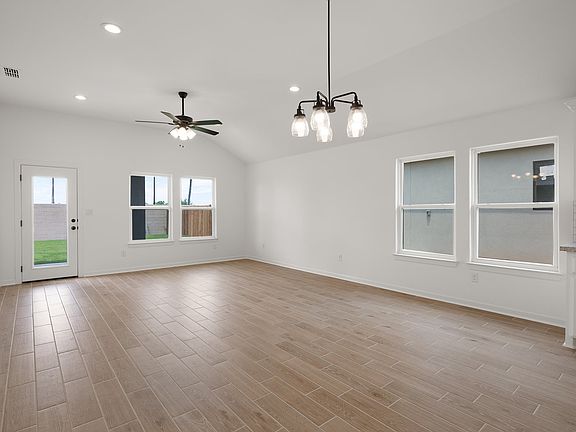 Enjoy the convenience of single-level living without compromising space or luxury in this stunning three-bedroom, two-bathroom home. The layout features an open concept kitchen, dining, and family room with direct backyard access. Guests can gather at the center kitchen island, which features upgraded pure white maple wood cabinets, granite countertops, and GE stainless steel appliances. All three bedrooms run down one side of the home including the master with a walk-in closet and primary bath. Enjoy added convenience with a utility room and a two-car garage on the right side of the home. Covered patio Maple wood cabinets GE stainless steel appliances- Gas Driftwood tile flooring throughout home