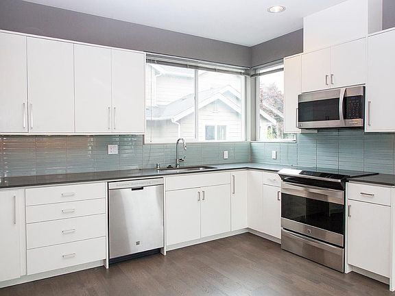 Available NOW - Sleek and modern three-bedroom West Seattle townhouse! Built in 2014, this townhouse features hardwood flooring, ceramic tile bathroom floors, large windows, attached garage, and a deck off the master. The entry level features one bedroom with new carpet, closet, and garage access. Head upstairs to enjoy a spacious living room and kitchen with plenty of room for dining. Stainless appliances and quartz countertops. Upper level features two additional bedrooms with new carpet and one bath. Walk in closet and south-facing deck off master. In-unit washer and dryer. Efficient mini-split for heat and cooling. Cat or small dog (under 25 lbs) okay with an additional pet deposit. Close proximity to bus lines, Fauntleroy, California Ave SW, Morgan Junction, Rapid Ride, shopping, restaurants, and Lincoln Park! #westseattlerentals #avenueoneresidential #seattleforlease #westseattle