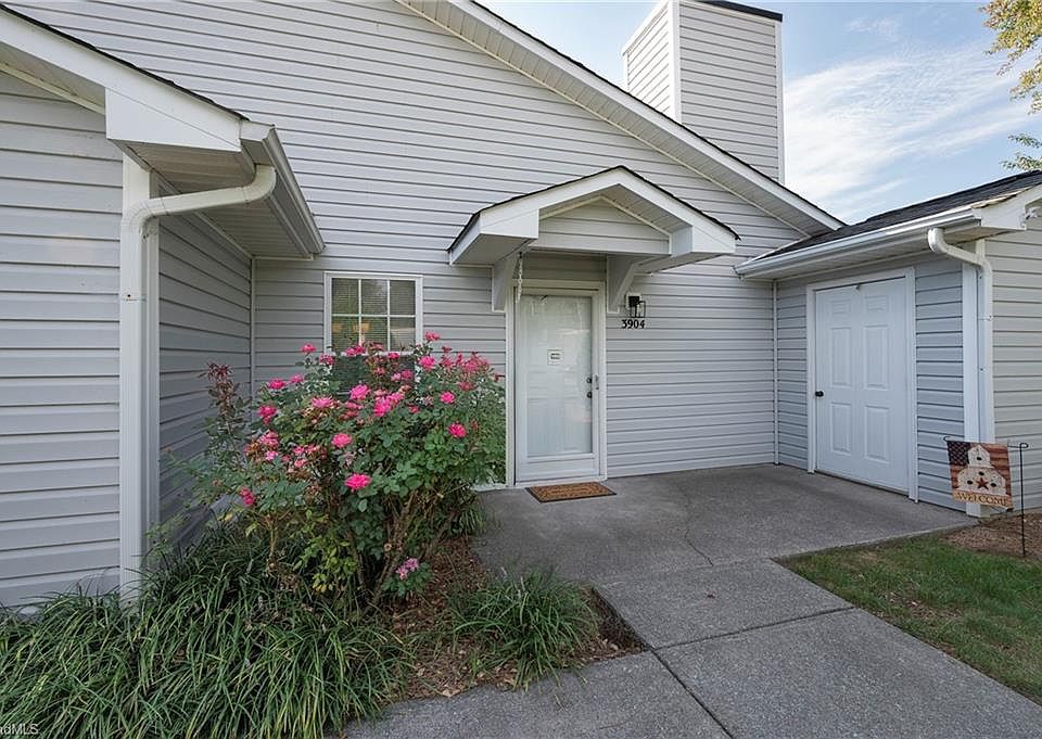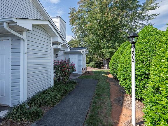 Beautiful main-level condo featuring 2 bedrooms and 2 bathrooms in a wonderful location near Tanglewood Park, grocery stores, restaurants, and shops. This home offers brand-new stainless steel kitchen appliances (refrigerator 2025, glass top stove 2025, dishwasher 2024, also including a new hot water heater 2025). There are pull-out tray drawers in both the kitchen and bathrooms for easy access, and a spacious sunroom with vaulted ceiling that fills the space with natural light. The living room includes cozy gas logs, while the primary bedroom boasts a generous walk-in closet. Enjoy the private back-unit setting with a lovely patio, outside storage room, and the convenience of no steps. This home has a low-maintenance lifestyle with no outdoor upkeep required. Washer and Dryer will convey.