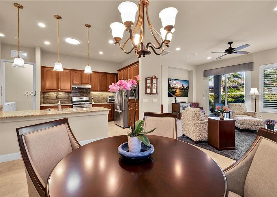 East facing patioStool height islandBreakfast barGlass tile backsplashSpacious dining areaUpgraded stainless steel appliancesDesk nook