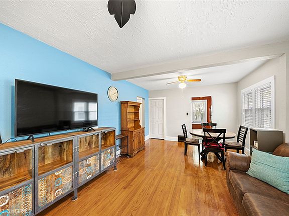 This stunning 3BR, 2BA bungalow is located in one of the most sought-after neighborhoods in Des Moines. The spacious open dining room living room allows for versatile living and entertainment options, and features gorgeous hardwood floors throughout the main level. You'll love the galley kitchen that opens to the dining room, creating a seamless flow and convenience for meal prep and serving. The upstairs area boasts a charming dormered space that could easily be converted into a bedroom, office, or hangout space, providing endless possibilities for customization. The finished lower level features a bar area and 3/4 bath, perfect for hosting guests or simply unwinding after a long day. A large 2-car detached garage provides ample storage space, and the mature trees surrounding the property create a serene ambiance while enhancing privacy. The deck and patio areas are perfect for outdoor entertaining and relaxation, while the adorable front porch is a delightful welcome into the cozy home. Located on a quiet, tree-lined street, this property is conveniently close to the East mixmaster, Grandview University, Chicago Speakeasy restaurant, Riverview and Birdland Parks, and other popular city amenities. This graceful bungalow offers the perfect combination of traditional charm and modern convenience, making it the ideal place to call home. 13 Mo HWA Platinum Home Warranty included.