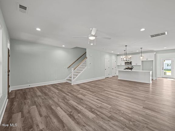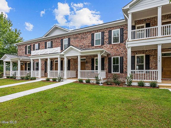 Charleston charm meets modern convenience! This beautifully designed townhome on a picturesque, tree-lined street in Carolina Commons offers 3 bedrooms and 2.5 baths. The first-floor owner's suite provides ease of living, complemented by two spacious great rooms and two guest bedrooms with walk-in closets. Enjoy morning coffee or evening breezes from the inviting double porches, and appreciate the practicality of an attached garage. Perfectly located just minutes from Historic Downtown New Bern, 12 miles from Cherry Point Marine Corps Air Station, and only 45 minutes to Atlantic Beach. Residents also have access to fantastic amenities including tennis courts, pickleball, a community pool, pavilion, and on-site dining at the Sports Bar & Café—ideal for connecting with family, neighbors, and friends. Cable TV and fiber internet are included through the community HOA.