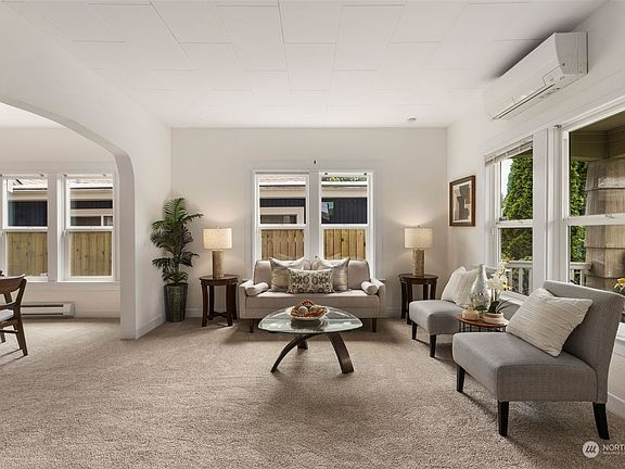 Charming 1920 two-bedroom home in the Everett Historic district with modern updates with AC. Retains beautiful original features like a charming archway and built-in details. The open floor plan in the main living space is filled with natural light, leading to a spacious kitchen and separate dining room. New carpet thought out and freshly painted. The laundry room off the kitchen provides easy access to the backyard and the oversized two-car detached garage with alley access. The basement offers ample storage or potential for a recreation room. Easy-care landscaping in the fully fenced front and back yards, plus a covered porch for enjoying the afternoon sun. Conveniently close to the freeway, shopping, and entertainment. Pre-Inspected.