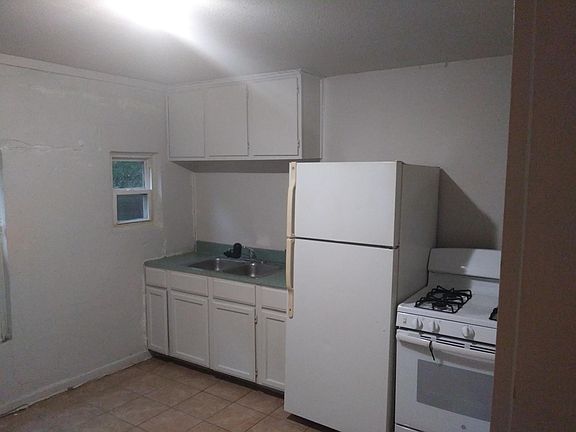 This is the upper apartment with one bedroom one bath apartment with tile floors, gas stove and tiled backsplash , text for showing