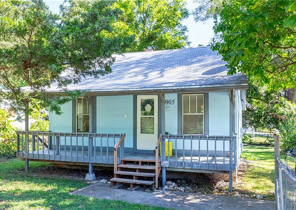 BUDGET FRIENDLY HOUSING!! CUTE RANCH HOME/ spacious front porch! LARGE living room/ dining room combo with built-in closet and bench storage. Even space to have an in-home office! YOU WILL LOVE THIS ADORABLE KITCHEN with wood cabinets and old-school CHARM! Kitchen has a large spice rack space, stackable washer & dryer, updated counter tops and so much more! Back stoop has a deck to sit and enjoy the yard or for summer BBQ's! Front porch can be easily decorated for the seasons! In the last 2 years the HVAC is replaced, WATER LINE replaced, and PEX plumbing. Breakerbox updated and updated meter. Home has google fiber. There is a fenced front yard perfect for pets or kids. Basement space is clean and great for a storm shelter. Feel free to open the cellar door and look. Also to the right of the property is a long driveway for off-street parking space for 3 cars. CLOSE to HWY access, shopping, restaurants and more! So much to love and so affordable!