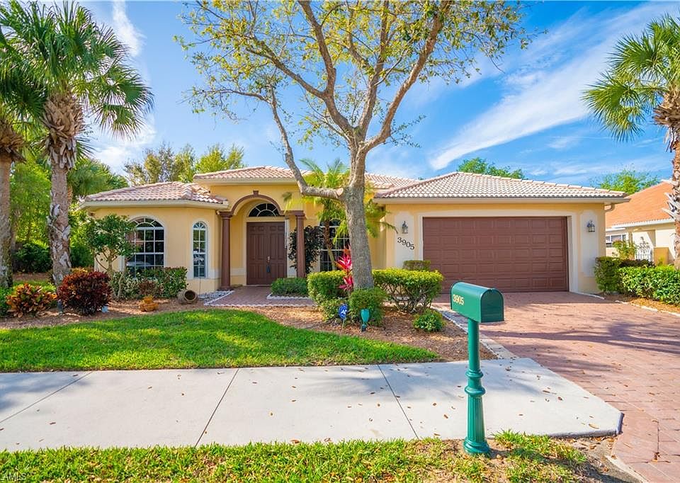 STOP HERE..Here It Is! One story home and one of the largest homes in Forest Park. This fantastic, spacious 4 bed+den, 3 bath home offers an abundance of upgraded features to fit every lifestyle, among these features is an open floor plan, high vaulted ceilings throughout the living room with nice trade ceilings around the house, living and formal dining rooms, but also a family room that overlooks the wide-open kitchen and a second master suite, game/play room, exercise room or a 'man cave', and the two additional rooms that share a bathroom in between and built-in shelves in the office. tile flooring through and hardwood flooring or laminate in the rooms and den. kitchen offers brand new stainless Steal microwave, dishwasher and refrigerator, tall cabinets and granite counter-tops, custom pantry and breakfast bar. Painted in soft neutral tones, ideally located at the end of the street, adjacent to the Golden Gate High school. Southern exposure and private backyard. Only 1 ½ miles from I-75, 10 minute ride to downtown Naples area and next to a fabulous community park, which also includes a dog park and public boat ramp.