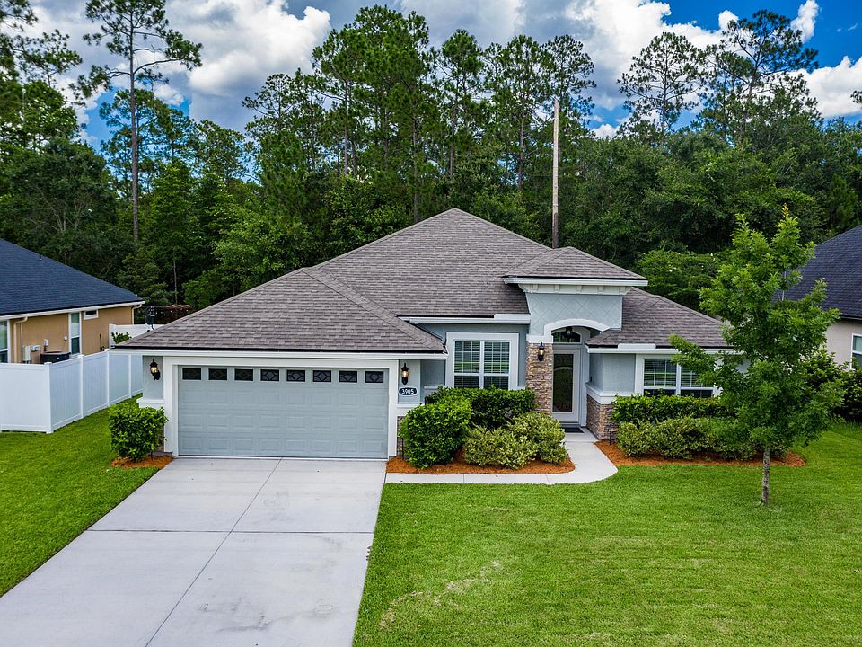 CDD BOND PAID IN FULL!! Beautifully appointed 4 bedroom 2 bathroom home situated on a Natural Preserve Lot. From the moment you walk in you will notice the detail in the Decorative Glass Inserted Front Door with Medallion at entry and Tile in all wet areas. A cooks kitchen with an island, upgraded cabinetry, Granite Counters and Stainless Steel Appliances. Separate Formal Dining with Wainscot, Huge Great Room with Gas Fireplace, Giant Sized Master with two step Tray Ceiling, Master Garden Bath and Separate Tiled Shower that opens into a with huge walk-in Closet. You will enjoy the outdoors on an over-sized screened in lanai. This home has been well maintained and won't last long! Make your showing appointment today! Ring doorbell conveys. Storage rack in garage conveys.