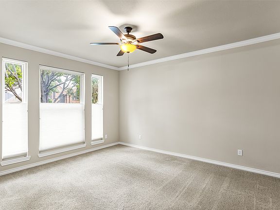 Enjoy all this updated Hunters Creek home, with its blend of comfort, functionality, and space, has to offer. The excellent floor plan flows from a dramatic entry and split formals to a comfortable family room, with wood burning fireplace; stylish island kitchen, with granite counters, upgraded cabinets and stainless steel appliances; and breakfast area overlooking the spacious backyard, with towering tree, two expansive patio areas, stained, steel-post fence and attractive storage shed. This 2-story, 5-bedroom floor plan offers space and versatility. The bedrooms, most sizable and with a vaulted ceiling, are split three ways, with the primary bedroom thoughtfully placed for added privacy, and a downstairs guest room (or office) with direct access to a remodeled bathroom, one of three full bathrooms. (One of the secondary bedrooms upstairs also has direct bathroom access.) The remodeled primary suite boasts wood floors, a sitting area, with beautiful bay windows providing a backyard view, and a spa-like bathroom, complete with split vanities, large shower, and custom-designed walk-in closet. Additional features and upgrades include: Renewal by Andersen® windows; ceiling fans in living areas and all bedrooms; separate utility room, with electric & gas dryer hookups and room for a freezer; 2-car garage, with electric garage door opener; 2025-installed roof shingles and gutters; 17-SEER HVAC systems; 50-gallon gas water heater; and sprinkler system. Additionally, both the exterior & interior were painted in 2025, and the foundation was reinforced in 2022. Adding to the overall appeal, Hunters Creek, located in Denton County, and with low, mandatory association fees, is an established, treed neighborhood, minutes from all three Lewisville ISD-zoned schools, several major thoroughfares, and a DART rail station, and close to Lake Lewisville & DFW airport. Buyer and buyer's agent to verify all information, including, but not limited to, room dimensions, features & schools.