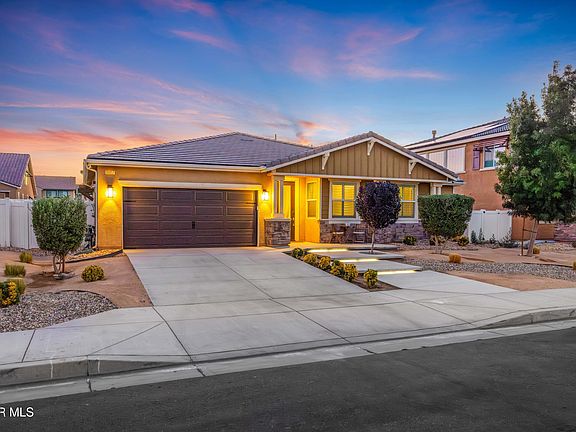 This beautiful 4 bedroom, 4 bathroom single story home offers PAID OFF SOLAR, over 3,000 sqft of living space, and sits on a spacious 7,851 sqft lot in a clean, newer community with no HOA! Built in 2021, this property combines desert modern design with top-of-the-line smart home features and energy efficient upgrades throughout. As you pull up, you're welcomed with gorgeous curb appeal featuring a stone-accented exterior, beautiful drought-tolerant landscaping, an elegant custom front door, and custom-lit concrete stairs that lead you right to the entry. There's also a cozy seating area in the front yard, perfect for enjoying your morning coffee while taking in the peaceful sunrise. Inside, you're greeted with high ceilings, large windows that allow an abundance of natural lighting, and a bright, open floor plan that flows perfectly from the kitchen to the family room, perfect for entertaining guests! The kitchen features granite countertops, stainless steel appliances, a large island with bar seating, beautiful pendant lighting, a walk-in pantry, and shaker cabinets with plenty of storage. The spacious family room is complete with a sleek gas fireplace, built-in Sonos ceiling speakers, and smart blinds that work with the smart home system. Just off the kitchen, you'll find a large formal dining area that's currently being used differently, but offers plenty of room for a full dining setup and is equipped with smart blinds as well. All four bedrooms are generously sized and each offers either a private or nearby bathroom, plus walk-in closets! The primary suite is tucked away for extra privacy and includes a spa-like bathroom with dual sinks, a soaking tub, and a large walk-in closet. Tech lovers will appreciate the fully integrated Control4 + Josh.AI smart home system, CAT6 wiring, fiber internet, smart blinds, energy efficient double pane windows, tankless water heater, and best of all; owned, paid-off solar! The backyard is ready for your dream setup, Whether you envision a lot pool, outdoor kitchen, or relaxing garden. This home is walking distance to Marie Kerr Park, where you can enjoy summer concerts and watch the 4th of July fireworks show right from your yard! Close to Rancho Vista Golf Course, Antelope Valley Mall, shopping centers, restaurants, schools and Freeway for easy commuting.