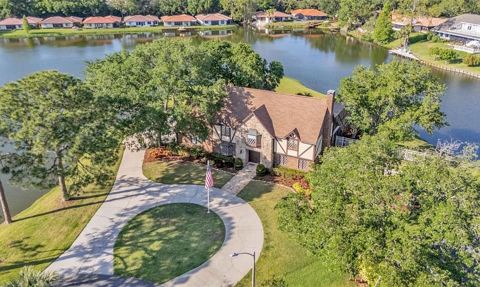 JUST REDUCED! **Lakefront Estate on 1.42 Acres with Guest House** Welcome to 3906 Canyon Lake Point, a rare lakefront retreat nestled on a private 1.42-acre peninsula in the well-established Kellsmont neighborhood. With approximately 3,400 sq. ft. of total living space, including a detached guest house, this Tudor-style estate offers timeless charm, privacy, and room to make it your own. The main home features 3 bedrooms and 2.5 bathrooms, a spacious layout filled with natural light, and a cozy Florida room overlooking the pool and peaceful Lake Canyon. The chef’s kitchen is equipped with stainless steel appliances, while the primary suite upstairs is a true retreat with a fireplace, hidden walk-in closet, laundry chute, en-suite bath, and private balcony with lake and pool views. The detached guest house includes its own bathroom and kitchenette—perfect for visitors, extended family, or a private office/workspace. Step outside to enjoy the screened-in pool, mature landscaping, and breathtaking sunsets over the water. This one-of-a-kind property offers peaceful waterfront living with the convenience of being close to everything. Don’t miss the opportunity to make this stunning lakefront escape your own! Schedule your private showing today and explore the possibilities.