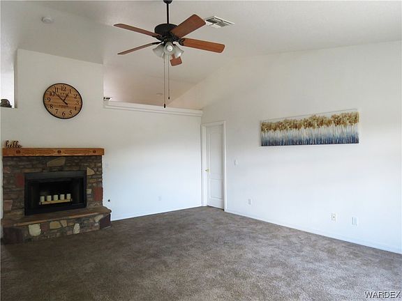 Move In Ready ~ This 1,537sf home was built in 2005 with a three bedroom, two bathroom split floor plan. The living room has a gas fireplace, vaulted ceilings, pot shelves and a big window that looks out to the front yard. Kitchen has plenty of prep space, breakfast bar, deep dual bowl cast iron sink, newer faucet & garbage disposal. New stainless 5 burner gas range with griddle, microwave and dishwasher. Main bedroom is on the west side of the home with a vaulted ceiling, pot shelf, a slider out to the rear patio, walk in closet, huge linen closet, dual sinks and walk in shower. Bedroom 2 & 3 both have nice big closets and sit on the east side of the home. The hall bathroom is between the bedrooms with a single sink and a tub shower combo. Home has central air, ceiling fans, blinds throughout, raised panel doors, carpet, and ceramic tile in the kitchen, dining & bathrooms. Attached two car garage has an auto opener, utility sink, washer & dryer hookups with gas or electric available, gas water heater and gas furnace. Exterior of home has just been painted, tile roof, mature landscaping front & back, block wall, rear covered patio with a ceiling fan & gas stub out for a grill. 3906 E. Nichole Ave. Chaparral Mesa Kingman, AZ.
