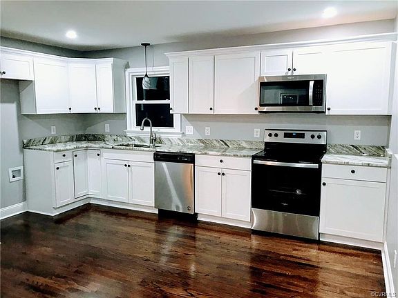 This is a MUST see! Beautifully renovated home in Eastern Henrico! Shows like a new home! This (4) bedroom (2.5) bath home is located in a great school district of Henrico. Lots of space for a growing family. Upper level sports an open floor plan with a large living room that opens to kitchen and dining. All new kitchen with granite countertops and stainless steel appliances. Beautiful hardwood floors throughout. There is a large family room, on the lower level, that opens to a huge enclosed patio in the back yard. Just add your favorite outdoor furniture and fire pit to start entertaining. All (3) bathrooms offer the same granite countertops as the kitchen, ceramic tile, and all new fixtures. Also located on the lower level, is a Master bedroom suite with its own large bath and (2) closets. Separate laundry on the lower level. All new lighting throughout. New electrical wiring and panel box. New roof and new hot water tank. New heat pump. The back yard is huge, partially fenced, and the total lot is over a half-acre with fruit trees. Minutes away from fine dining and shopping. Also, just minutes away from highways 64, 895, 295, and the airport. Fireplace sold as-is.