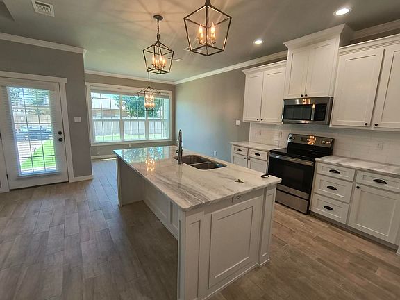 This gorgeous, newly built property (just under 2,000 sq ft) features a luxurious kitchen island and modern appliances.