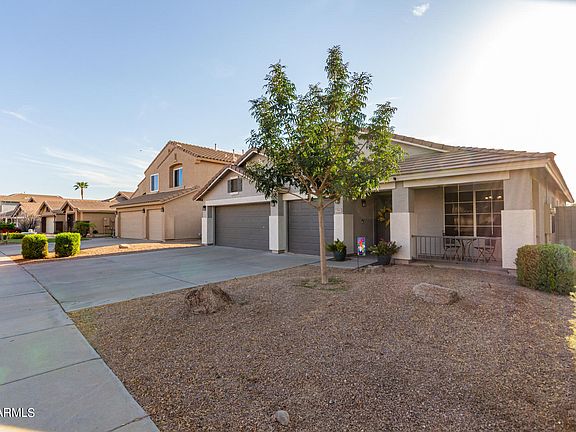 A fantastic 3 bed, 2 bath residence in San Tan Ranch is now for sale! Great curb appeal, a low-care landscape, 3 car garage, and a welcoming front porch are just the beginning! Inside you will find spacious dining & living areas w/vaulted ceilings, NO CARPET, and neutral palette throughout. The chef's kitchen is comprised of wood cabinetry w/granite counters, a pantry, recessed lighting, stainless steel appliances, and an island complete w/a breakfast bar. Enjoy a good night's sleep in the primary bedroom, boasting a walk-in closet and a full ensuite w/dual sinks. The wonderful backyard includes a covered patio and a newly refinished sparkling blue pool perfect for the warm summer days! Your new home is waiting for you, act now!
