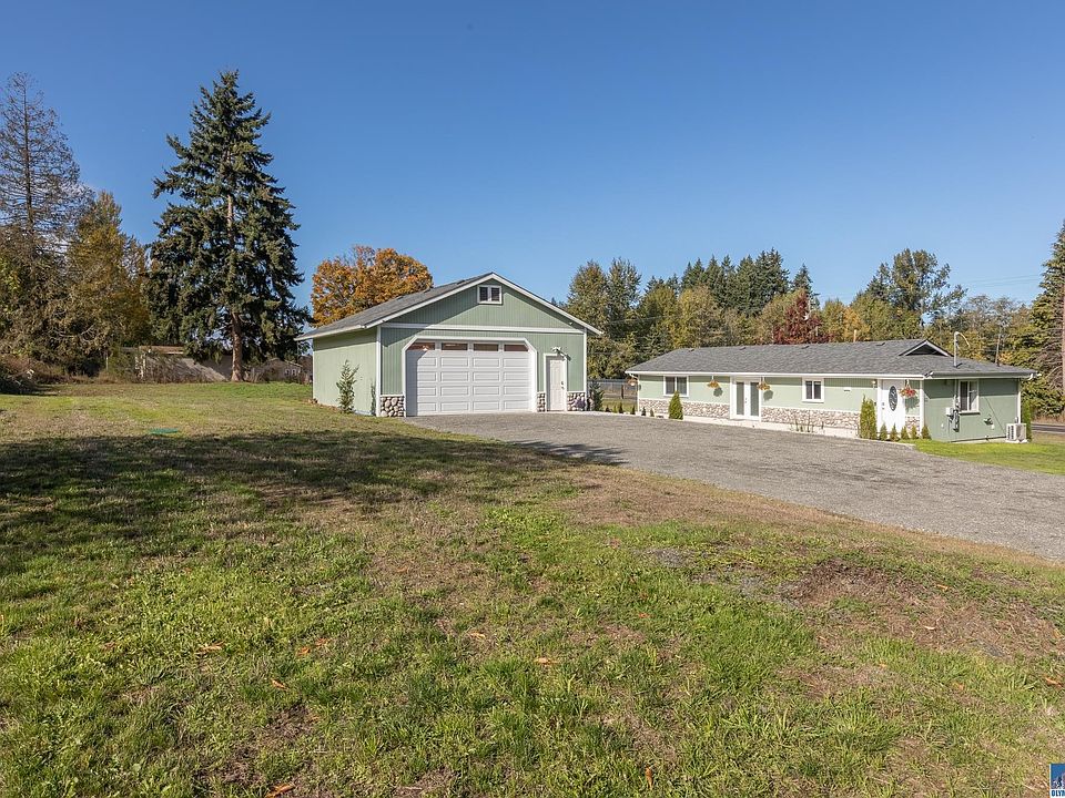 Beautiful, bright, updated and maintained with the bonus of extra space. From the heat pump to the kitchen to the new flooring and updated bathrooms, the interior will say welcome home. Oversized detached garage has bonus room for hobbies, storage, or gardening supplies. Even the electrical connection from the road and mechanical systems are new. New septic system. Gorgeous outdoor patio space. According to the County and lot size this parcel may be dividable. Open lot on West end is part of the property.