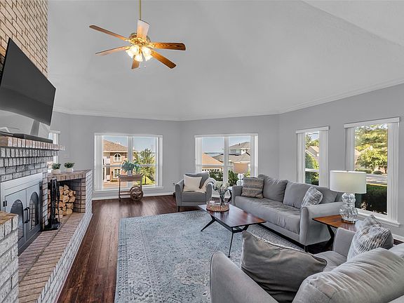 Sparkling poolWood-burning fireplaceOpen floor planSpacious bathOversized closetInviting front porchLarge primary suite