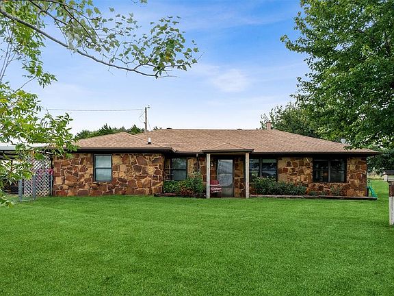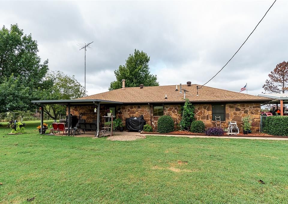 Little slice of country heaven! This 3 bedroom, 2 bath well maintained updated home sits on 10 acres (mol) at the edge of the tri area of Chickasha, Anadarko and Cement. Just about 6 miles away from Lake Burtschi this beautiful rock veneer home has so much to offer! The home features a 30 x 40 shop, large storm shelter below ground, chicken coop and a corral! The kitchen has custom wood cabinetry and granite counter tops, pantry and eat in area. There is nice sized living room complete with crown molding has big windows that have the prettiest view of the country side, a dining room with engineered wood floors and a wonderful covered back porch perfect for enjoying a sunrise or visiting in the evening with friends. The hall bathroom has been remodeled to a large shower and has a raised vessel sink! Very large carport that can accommodate several vehicles plus some ATV! These sellers really care about their home and grounds and it really shows pride of ownership! Come see this home and make it yours!