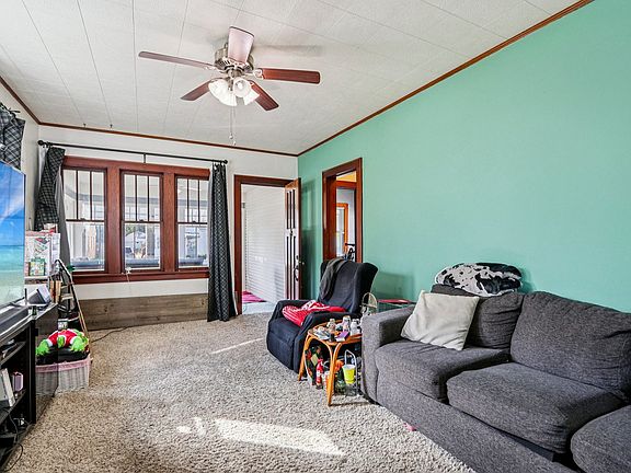 This 2-bedroom home offers plenty of character and potential. Enjoy a large enclosed front porch and a spacious living room that opens to the bright dining room with hardwood floors and French doors leading to a generous deck. The kitchen is easily accessible from the dining room, making entertaining simple. Full bath features tile flooring and a shower surround. Additional storage or living space is available in the attic. Completing the home are a 2.5-car detached garage and a full basement.