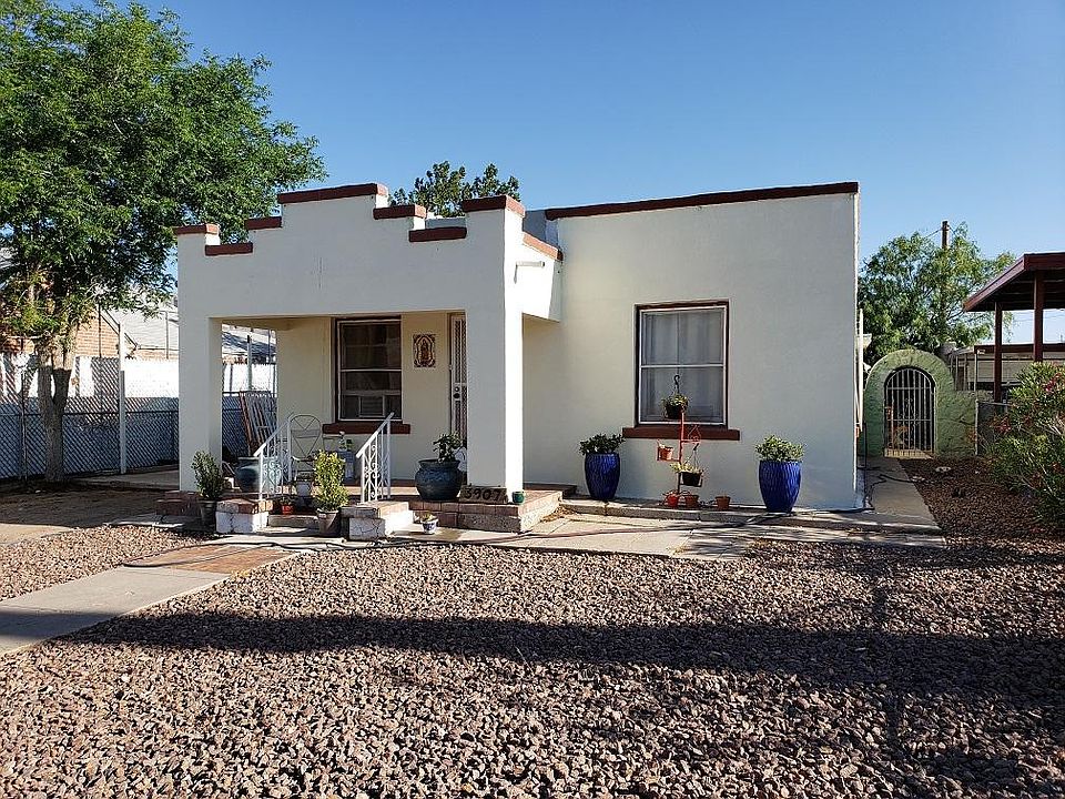 Welcome Home! Enjoy the open floor plan from the front door to the back patio. This home has been updated to include the Mexican Patio Bathroom, refinished hardwood floors, and unique chef kitchen. High end appliances allow the chef in you to enjoy your kitchen. The utility room gives access to the back patio, zoned master bedroom, and large basement. Enjoy the large landscaped backyard with a view of the Franklin Mountains especially at night. Store your personal toys or create your very workshop in the detached stone garage with alley access. Stay inside during the hot summer nights and relax with the cold refrigerated air. Come on Over and call this Charming Central Home your next Home Sweet Home!!