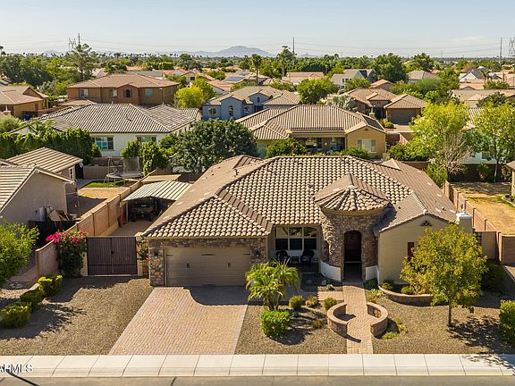 Welcome to a Mediterranean gem, never before offered, in NE Mesa's premier gated community of Trovita Estates. This amenity-rich neighborhood is one of Mesa's most desirable addresses, and this coveted single-level Tahoe model—set on a prime homesite—offers effortless living with no interior steps, refined finishes, and modern upgrades throughout.