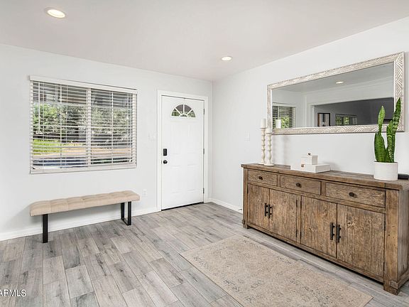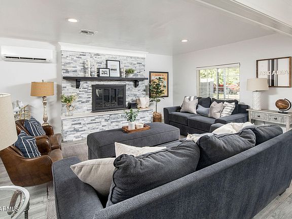 Located on a quiet cul-de-sac, tucked away from busy main streets, this home makes you feel like you aren't in a buzzing city but still only minutes away from all the favorite local dining and entertainment that Arcadia has to offer. Once you step foot in this beautiful home you will immediately notice the open floor plan and light and bright updates. A spacious Arizona room gives you many options for use. The primary bedroom includes a walk-in closet, dual bathroom vanities, a soaking tub, and a walk-in shower. A working AC unit and additional mini splits in multiple rooms will provide more energy efficient AC and cooler temps in the summer. With a private backyard space you can enjoy Arizona living and entertaining. You will truly love the location, charm, and privacy of this property Recent updates to the house include new pool filter, backyard and front yard landscaping, travertine pavers, repaired irrigation, turf installation, Eclipse Window blinds in Arizona room and primary bath and blackout blind in nursery, air conditioning splitters, partial roof refoaming, and freshly painted in the Arizona room and living room