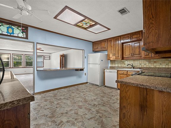 Well loved & maintained home with 3 bedrooms, 3 baths, 2 living areas, 60x40 shop with rec room, tool shed, rock 2 story building(hobby or craft) gorgeous flowers everywhere! Has well that was used before rural water. WB fireplace, plus wood stove in one living area/dining. Roof in 2015, HVAC 2021, duct work in 2022, septic cleaned in 2021. Must see to appreciate.