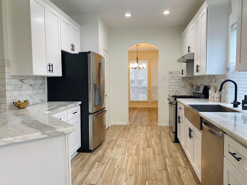 Fresh paintLarge covered backyard patioSpacious bedroomsVinyl floorNew kitchenMarble countertopBig closets