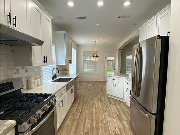 Beautiful inside! All vinyl floor! No carpet! 4B/2.5b. House has been professionally cleaned and ready to move in! New Kitchen,fresh paint. House is at a cul-de-sac.Very well maintained. Master bedroom on the first floor. Beautiful marble countertop and fireplace. Spacious bedrooms with big closets. House has two A/C units. Both are brand new. House has never flooded before. Large covered backyard patio.