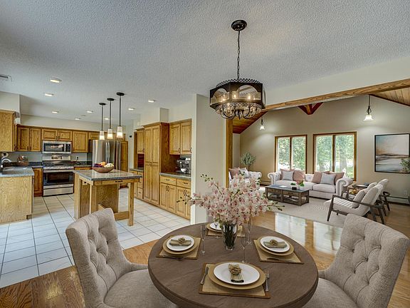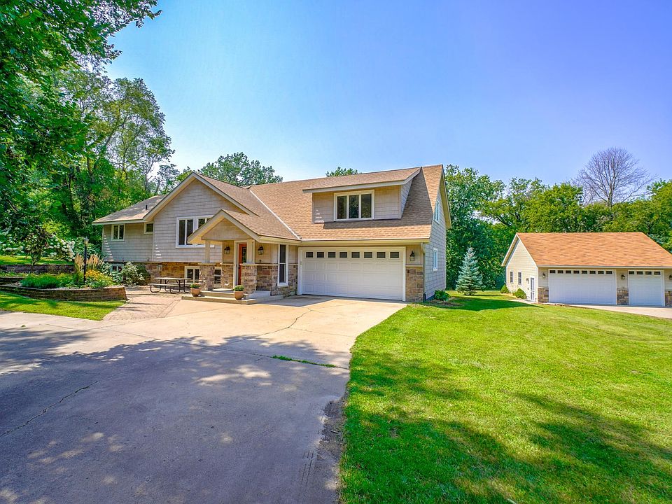 This charming home offers the ideal blend of space, privacy, & comfort! Step inside to an inviting open layout feat. a cathedral ceiling, beautiful wood floors, & abundant natural light. The sizable kitchen offers SS appliances, Cambria counters, & ample counter & cabinet space for easy meal prep. Discover comfort for all in the generous bedrooms w/ spacious closets, including the massive owner’s suite w/ double closets & an ensuite bath. The walkout LL boasts a large living area with a fireplace, kitchenette, and ample storage space. Enjoy endless outdoor activities on this private 1.2 acre lot from the huge yard, walkout deck, covered patio, & front patio. The heated oversized garage, complete with shelving, cabinets, & a workbench, plus an add’l heated 3-car detached garage provide ample space for your a variety of needs. Located in a quiet neighborhood near parks, lakes, & major transportation routes, you’ll love the convenient location! Don’t miss the incredible opportunity!