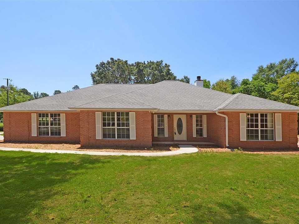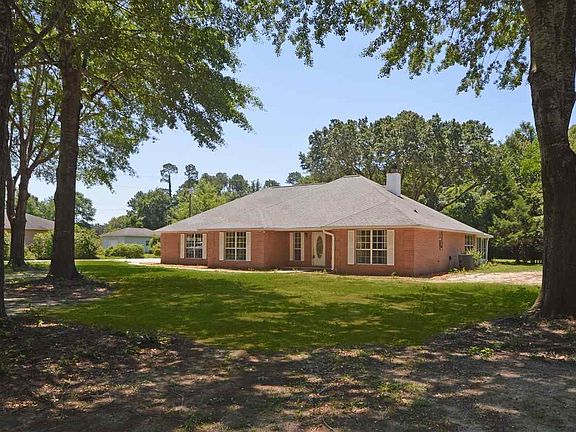 This property is a RARE find tucked in the heart of Pace off the beaten path. Home is nestled in just under 4 acres of land with beautiful hardwoods and privacy. This home has approx. 111 ft of wooded area behind the house and 1.7 acres next door that are wooded as well as housing a fantastic 100x50 metal building for storage. The home offers new carpet and vinyl flooring and a great livable floor plan. Vaulted ceilings in the great room with nice wood burning fireplace and french door access to the massive FL Room. Kitchen is very spacious and offers a desk area, breakfast bar and nook and fully equipped with appliances. Laundry room is spacious with cabinetry for household items as well as a utility sink. The master suite is quite spacious and has trey ceilings and plenty of wall space for your furniture. The master bath is very nice with cultured marble double vanities, TRUE Jetted tub, Sep. Shower and 2 walk in closets. Need a home office, this home has it. This home appears to have been very well cared for throughout and the home offers some bonuses such as some gutters, Updated Roof with Architectural Shingles and a Transferable Termite Bond. The large metal building is tucked in the back of the adjacent acreage and has loads of potential. This home offers so much at such an amazing price ~ It is being sold AS-IS but don't wait long.