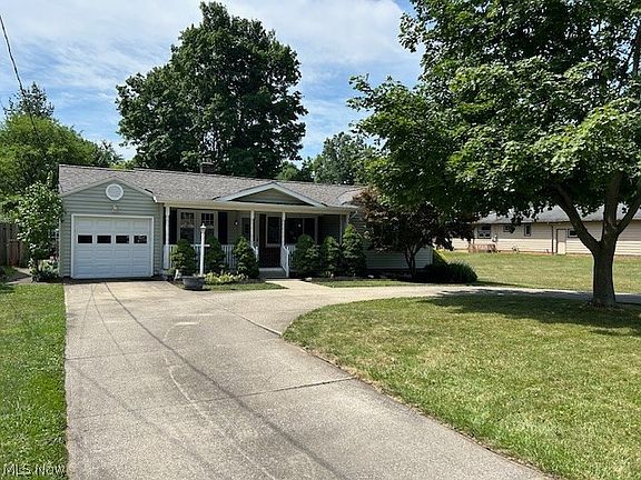 Conveniently located between downtown Willoughby and the Route 306, State Route 90 entry/exit. Situated on a 61 x 245' lot with circular, cement driveway in front, fenced-in rear yard and nice landscaping touches. Ranch design with large, covered front porch and cement patio in rear. Vinyl sided exterior and vinyl replacement windows. Newer dimensional shingle roof and gutters in 2022; shed roof on rear addition in 2019. Spacious three bedroom, two bathroom configuration ... several features including hardwood flooring, accent shelving, ornamental fireplace, knotty pine paneled wall, archways and picture window on rear wall. Step down family room with four large windows, center beam, closet and separate Amana heating/cooling unit ... a large gathering room with double doors accessing rear patio. Updated bathrooms. Range & refrigerator (2015), dishwasher (2022), washer & dryer and ring doorbell system included. Attached garage with automatic door opener (2020) and attic storage access. Seller has proactively initiated a one year home warranty.