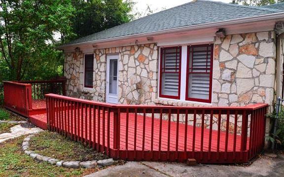 Rare, gorgeous stone home central Austin. 2 car detached garage. Huge rear deck and covered front porch. Quartz kitchen counter tops with new tile floor and backsplash. New refrigerator. Authentic wood floors in living-dining-bedrooms, large rooms, inside shutters on windows, H/AC system replaced. SEE PHOTOS, MUST SEE PROPERTY TO APPRECIATE. Application fee $75 per person. Deposit $2490, Pet deposit $550. Refrigerator included.