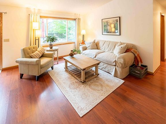 Welcome to this very open and airy 5BR 3BA home loaded with updates and great features! Great street appeal with vinyl siding/shutters and additional parking pad. Wonderful condition with large foyer with window and steps up into the vaulted living room and adjoining dining room with terrific southern exposure! Very spacious eat-in kitchen with loads of oak cabinets, pantry, newer SS appliances and bayed eating area. Updated main bath, as well as 3BRS on the main level, including spacious primary with updated primary ¾ bath. The lower level has a large family room with gas stove, large windows overlooking the front yard, & two additional very good-sized BRs, a spacious full BA/ceramic jetted tub & separate ceramic shower. Loads of updates – windows, patio doors, interior doors on main level, service door from garage, laminate flooring on main level, furnace & AC, washer & dryer, reverse osmosis, water heaters, garage doors++ Great neighborhood – ISD 196 Schools & Northview Park nearby!