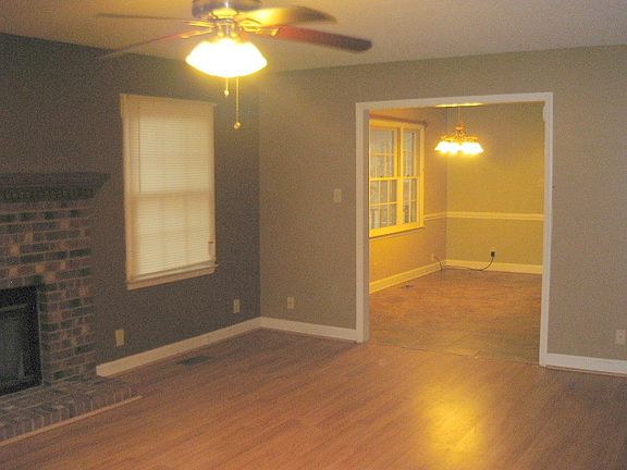 Three bedroom ranch with a 2 car garage. Large master with a walk in closet. Located on the opposite side of the house from the other 2 bedrooms. Laminate flooring in the bedrooms, living room and foyer. Tile in the w/d area, kitchen, and eating area. Stainless steel appliances in the kitchen. Open floor plan. Great room with fireplace with gas logs. Covered deck on the back of the house. Big fenced in back yard with storage building. Two car garage with remotes. No smokers please. Small pet friendly. Convenient to shopping and RTP.