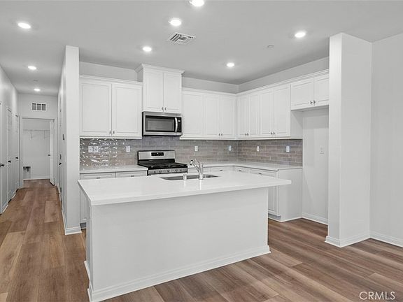 Great Location close to Community Park w Picnic zone, kids zone, dog walk, etc! Brand NEW, Corner 3 beds KB Home, 2.5 baths condo with open Living floorplan. Fully Upgraded!! Kitchen with modern white cabinets, Quartz kitchen countertop, single basin ceramic sink on ISLAND, stainless steel Electric appliances, undermounted bathrooms sinks, tustin door levers, recess lights thru out, Upgraded Luxury Vinyl Plank floors/ tile/ carpet, and much more. Our community offers reseort style pool, tot lot and sports courts, big community park. Easy access to the CA-15,60,91 freeways. Costco & local mall in 2 min Drive. Photo is a rendering of the model. Buyer can either lease or purchase the Solar.