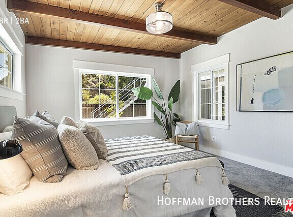 Perfectly reimagined private compound to live, work and play in the one and only Malibu! Summer's here, the time is now! Completely renovated and ready for immediate occupancy. Set back from and privately sited above the road, this gated retreat just across from Las Flores Creek Park is the perfect place for shelter and renewal. Awash in sunlight courtesy of 2 solar powered, remote controlled skylights, the living room welcomes with a wood burning fireplace and warm wood beamed ceiling.