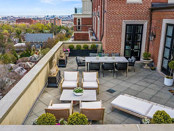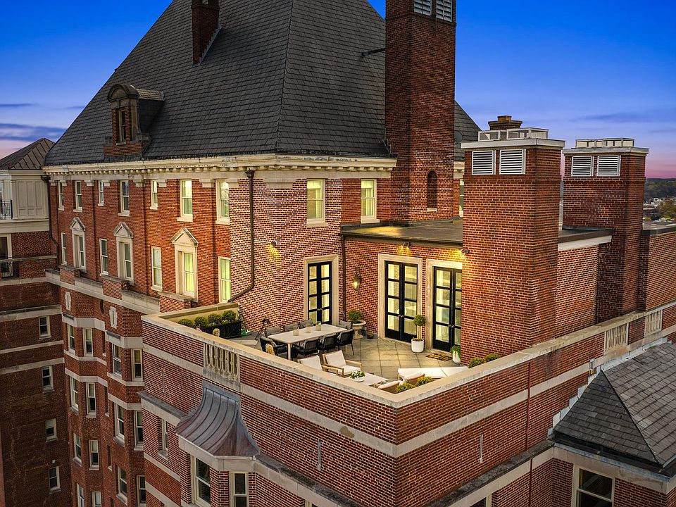 "I saw the angel in the marble and carved until I set him free" - Michelangelo. Architects Wyatt and Nolting actualized their vision in the completion of THE WARRINGTON in 1928....a Georgian Revival 13-story limestone and brick masterpiece comprised of 46 distinctive units. Perfectly positioned atop this pre-war condominium sits a nearly 4,000 square foot penthouse duplex with soaring 11-foot ceilings, epitomizing unparalleled luxury with impeccably proportioned spaces....ideal for both sophisticated gatherings and everyday living. Extensive millwork, custom herringbone cherry floors, artisan plasterwork, marble fireplace and exquisite lighting throughout. Impressive three sets of French doors open onto an expansive terrace.....providing the perfect space for alfresco entertaining and breathtaking views. Additional two sets of French doors with Juliette balconies are located in the library, providing westerly views over the rear gardens and spectacular sunsets. Impeccably appointed kitchen features....Viking Professional six-burner stove, Sub-Zero glass front refrigerator and Thermador 55-bottle wine cooler. A beautifully balustraded, grand curved staircase leads to the upper floor private space, with two exceptional en-suite bedroom retreats. A set of double doors leads to the gracious primary bedroom, with marble bath and exquisite closets. Building amenities include 24-hour front desk, full time manager and maintenance, porters and valet parking (with deeded space), extra storage, dedicated temperature controlled wine room with assigned spaces, bluestone patio with gas grill and an amazing, recently updated fitness facility. THE WARRINGTON.....an iconic address and a lifestyle to match!