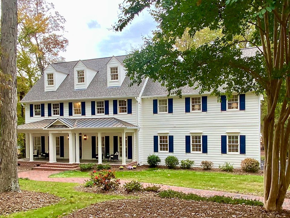 Perfectly situated on a private and partially wooded nearly half acre property in the beloved Hope Valley Country Club Neighborhood, this Classic Colonial home has been meticulously and completely renovated! The welcoming front porch spans the front of the house with a full color slate floor, and the navy blue shutters with brushed gold hardware give this quintessential Carolina porch a feeling of comfortable sophistication. The main floor has an open flow, from the beautifully appointed dining room that is ideal for both formal and informal occasions, to the expansive family room with space for two conversation areas and a large fireplace with substantial built in cabinetry, plantation shutters and 75 inch TV. Opening the doors of the family room extends the space even further out into the cozy screened-in porch with fireplace, which offers year round outdoor enjoyment. When it is time to host your outdoor party with family and friends, open the doors from your screened-in porch to the enormous deck and beautiful outdoor spaces to accommodate everyone on your invitation list! With a walnut topped island, quartzite countertops, Carrera Marble backsplash and new appliances, you will love the kitchen for all of your culinary creations. With both a front formal and back staircase by the kitchen and garage, the four bedrooms located on the second floor are easy to access. The spacious primary bedroom suite with fireplace and plentiful windows offers a private and luxurious retreat, complete with a windowed walk in closet room. Down the hall from the primary suite, you will find a centrally located laundry room, as well as three more spacious bedrooms, two with en-suite bathrooms, completely and luxuriously refinished. Two more staircases offer access from the second floor to the renovated third floor. In addition to a third floor bedroom and bathroom that could serve well as a guest suite or kids bedroom, there are flexible large areas that could accommodate an office, a playroom, a movie room, or a game room, depending upon your family's needs. Currently, the movie room holds a 70 inch TV. The shiny new epoxy floor of the garage, sealed crawl space, freshly paved driveway, installed fiber optic internet, wool carpet, electric car charger and arguably the best street in the neighborhood are just some of the notable features of this well appointed home! Located strategically in the heart of the vibrant and growing Triangle Region, this distinctive and elegant home combines suburban tranquility with convenient access to UNC Chapel Hill and Duke University, with the Research Triangle Park just a short drive away.