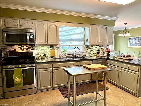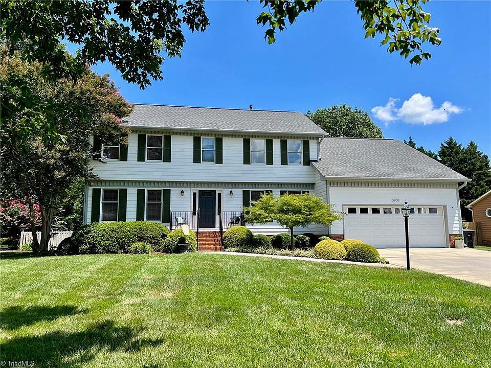 Remarkable find in one of the most desired neighborhoods in High Point, Blairwood Estates offers spacious lots, mature trees, and no HOA! As you enter, you'll notice the refinished hardwood floors as well as many other updates. The formal living and dining rooms are perfect for entertaining! The kitchen features stainless appliances, granite countertops, walk-in pantry and the most charming breakfast area! Relax in the den as you enjoy the fireplace with gas logs. The primary bedroom features a walk in closet and updated attached bath with a separate jetted tub and an amazing shower! Three other nicely sized bedrooms are also located on the 2nd floor. The private, fenced back yard is everything you've been searching for, complete with a Dutch Barn storage building, a garden space, and an extended deck for easy outdoor living. Encapsulated crawlspace with transferrable warranty.